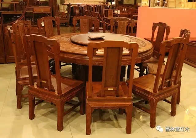 福林堂紅木—緬甸花梨木精品—福臨門(mén)面雕圓桌